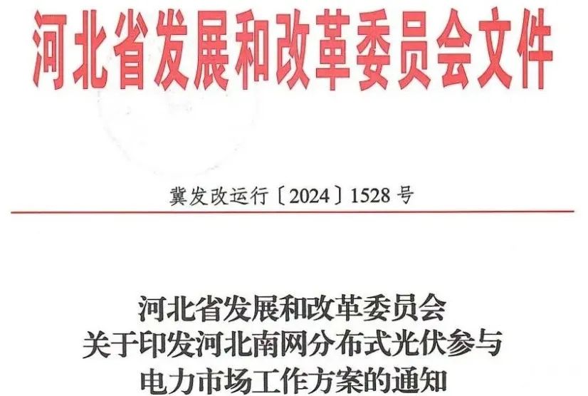 11月19日,河北省发改委印发关于《河北南网分布式光伏参与电力市场工作方案》的通知。通知明确,以2030年新能源上网电量全面参与市场交易为目标,遵循“先增量后存量、先商用后户用、先试点后推广”的原则有序、分类地推动分布式光伏入市,最终实现与集中式新能源的入市电量比例相同,逐步引导分布式光伏合理承担系统调峰、调频等消纳成本。
