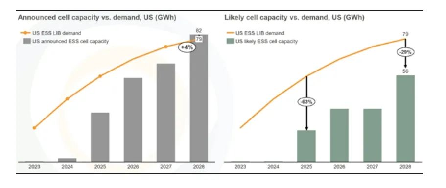 对于美国储能行业而言,其可能被认为依赖于廉价进口的磷酸铁锂(LFP)电池。然而,首个针对电池储能产品的关税是拜登政府于2024年5月宣布的,即从2026年开始对中国制造的电池征收25%关税。此举与先进的制造业税收抵免以及对美国国内制造产品投资的税收抵免措施相结合,旨在加速美国电池制造业发展。这一举措已经初见成效,据清洁能源协会(CEA)统计,目前美国宣布的用于储能系统的电池产能已超过80GWh,预计将在2028年前实现这一目标。