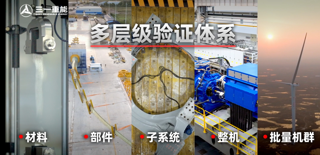为保障机组长达20年服役生涯中的可靠性,三一重能自建四大风电试验基地,建立起涵盖风机材料、部件、子系统、整机及批量机群的全方位验证体系,依靠严苛的试验标准,将风场验证前移,充分论证部件与整机可靠性,锻造风机“强健体魄”。