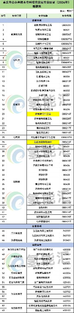 氢能汇通过梳理发现,新能源、氢能、光伏、储能、能源互联网、智能电网、新能源汽车、分布式发电与智能微电网等纳入高校本专科培育发展专业目录。