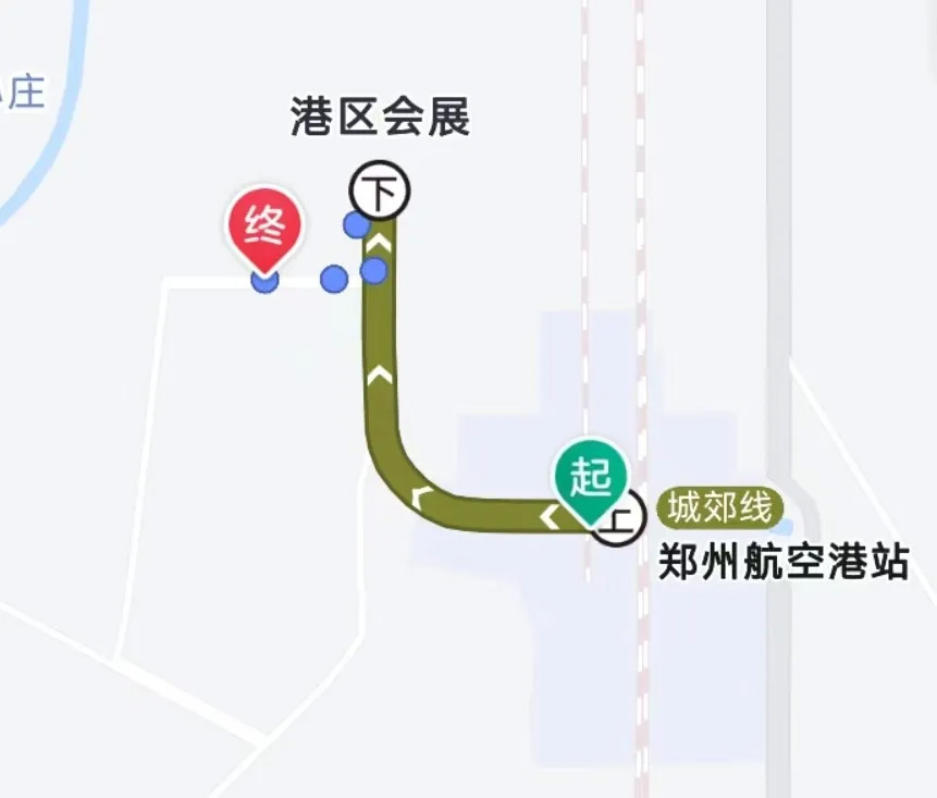郑州航空港站上车→港区会 展站下车,共1站,票价2元,约9分钟。